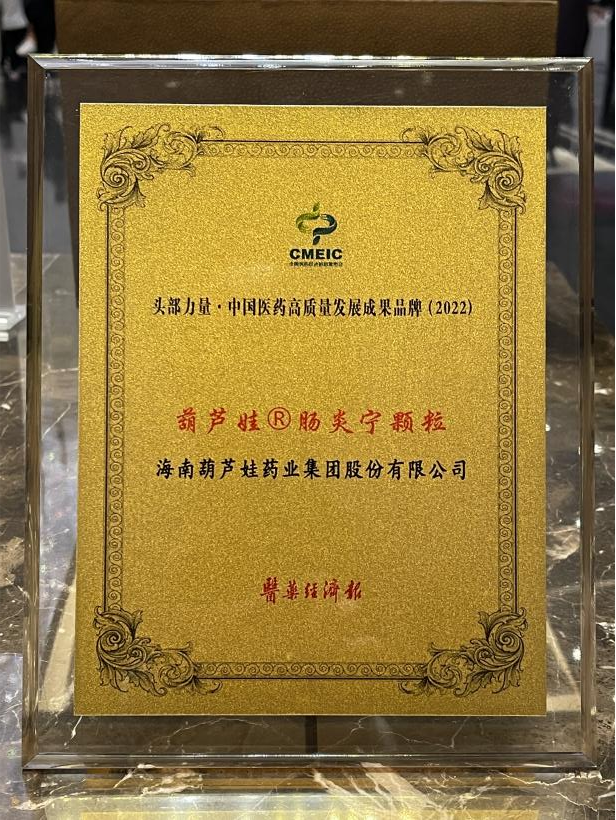 在本次发布会上,公司重点产品ag电玩牌肠炎宁颗粒同时荣膺“头部力量·中国医药高质量发展成果品牌(2022)”。ag电玩牌肠炎宁颗粒(2g),传承经典名方,临床广泛用于成人及儿童急慢性胃肠炎、腹泻等疾病的治疗,由于其杰出的临床价值,被纳入国家中医药管理局相关专家项目组制定的《中成药治疗小儿腹泻病临床应用指南》。