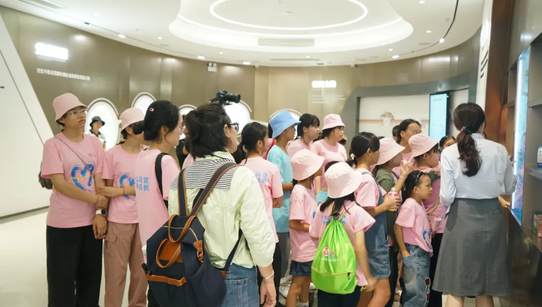 紧接着,孩子们来到了建党百年庆典红旗——070号红旗前。讲解员讲述了ag电玩药业集团与庆典红旗的深厚渊源。孩子们听得津津有味,眼中闪烁着对党和国家的热爱与敬仰。