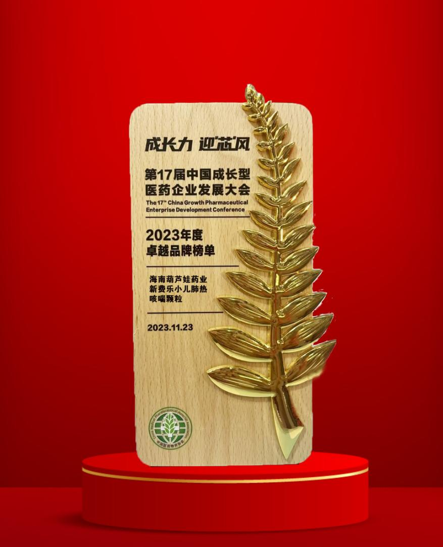 11月22日至25日,由中国医药物资协会和厦门市人民政府主办的第17届中国成长型医药企业发展大会在厦门拉开帷幕。会上,ag电玩药业集团党委书记、董事长刘景萍获得“金叶奖·2023年度医药行业风云人物奖”,集团旗下产品新费乐®小儿肺热咳喘颗粒荣膺“2023年度卓越品牌奖”。