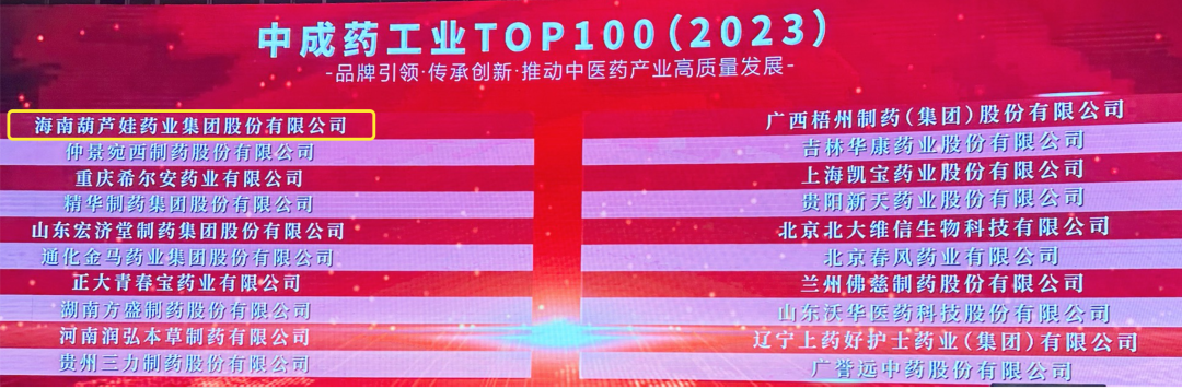 会上,还发布了“2023中成药工业TOP100”榜单,ag电玩药业集团荣耀上榜。